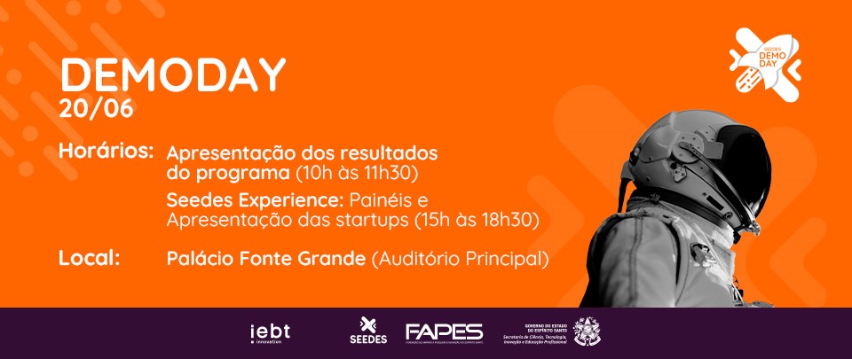 Para apresentar os resultados alcançados e o desenvolvimento conquistado pelas startups aceleradas, a Fundação de Amparo à Pesquisa e Inovação do Espírito Santo (Fapes) convida o ecossistema de inovação e empreendedorismo capixaba para o demoday de encerramento do SEEDES, que será realizado na próxima terça-feira (20), no auditório do Palácio Fonte Grande, no Centro de Vitória.